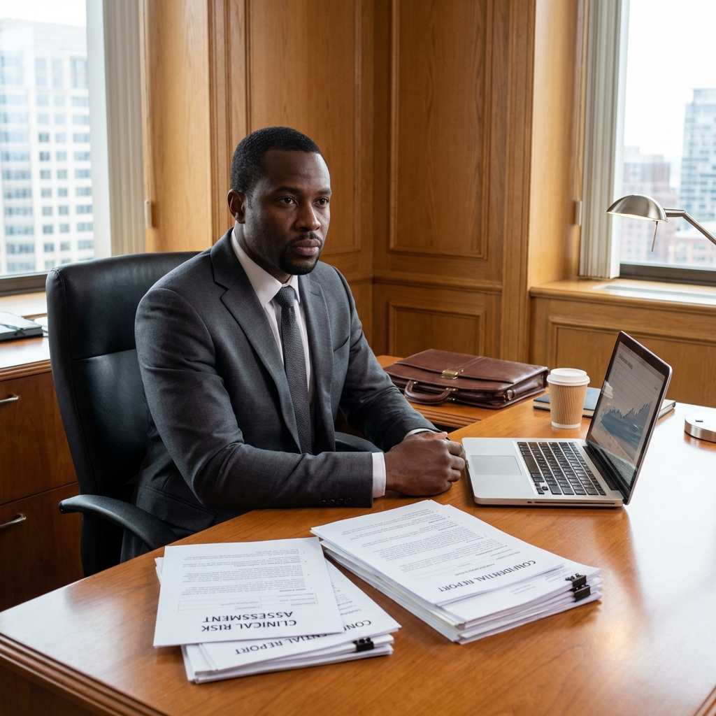 Manages risk frameworks for clinical programs and ensures patient safety compliance.